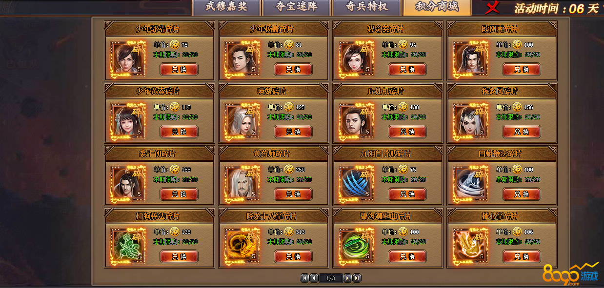 积分商城:用武穆寻宝的积分可以在积分商城里兑换各种材料