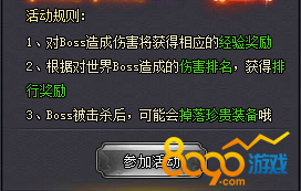 活动规则:1.对boss造成伤害将获得相应的经验奖励。