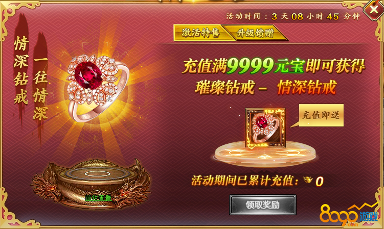激活特售:充值满9999元宝即可获得璀璨钻戒-情深钻戒
