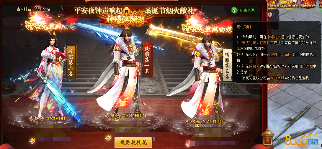 3. 礼花积分可用于跨服排行,每日比拼中的排名比拼