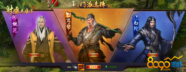 新《射雕英雄传》页游结合原著,将“天下五绝”中东邪、西毒、北丐三个最具特点的人物化为三大门派,让玩家依照自己对人物的性格与喜好选择自己的阵营与伙伴,未来游戏中也会有更多的门派PVP活动。