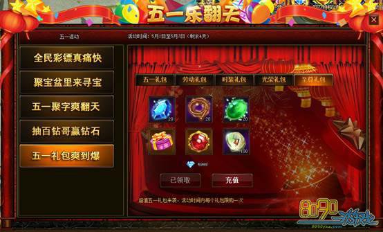 【五一礼包爽到爆】活动时间:2015.5.1-2015.5.7(开服小于7日、新区均无此活动)