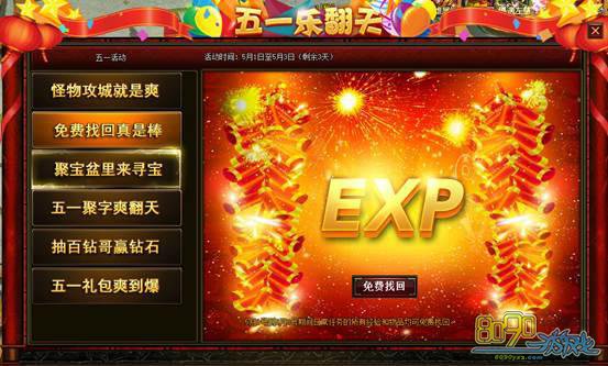 【免费找回真是棒】活动时间:2015.5.1-2015.5.3(开服小于7日、新区均无此活动)