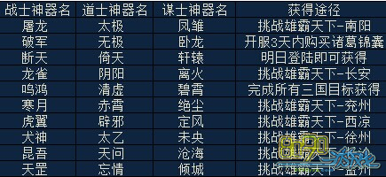 盛世三国2的神器都是需要完成相应的挑战才能获取的,每个职业的神器都有10把,还是相当靠谱的,但是游戏本身还是有很多奇怪的挑战,这两个的挑战还是很强力的呢。
