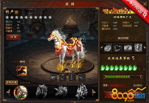 搜索"8090网页游戏"在8090三国令里,当你身处战场面对众多敌人时,坐骑就将成为你浴血杀敌的最好的战斗伙伴,胯下骑战骑,驰骋沙场更霸气,在和战骑一起战斗的同时,也不要忘记给战骑升级哦!话不多说,接下来,就一起来游戏里看看战骑强化的方法!