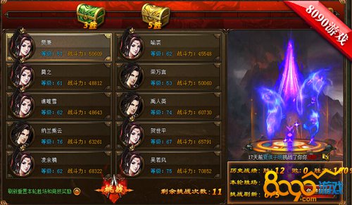 在三国时期的对战中车轮战也是必不可少的一种战术,而在8090三国令中群雄争锋玩法就是让大家能够以车轮战的形式挑战游戏中的各路豪杰,每次进行比武都将会是1V1的公平决斗,两人之间将凭借自身的实力决出胜负。在群雄争锋中,如果你的实力能够碾压对手,还可以达成“百人斩”甚至“千人斩”成就,成为超越三国武将的真正战神。