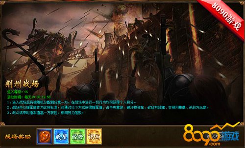 荆州一直都是兵家必争之地,而在在8090三国令中荆州战场的获胜者就是这片地域的王者,拥有最高的统治权,在游戏中大家将随机成为吴蜀两军中的将领,亲身上阵带头冲锋。在残酷的厮杀当中,玩家占领营地、破坏物资车、击杀地方玩家均可增加自己的援军值,只有在战斗结束后援军值最高的一方才可以获胜哦!