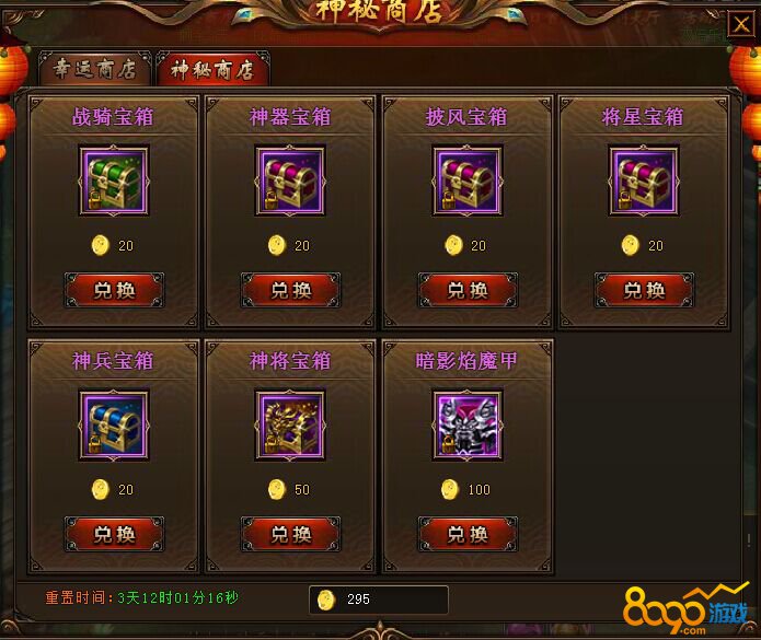 搜索"8090网页游戏"在8090三国令玩家可以消耗幸运门票免费在幸运商店购买神秘硬币,而神秘硬币则可以在神秘商店兑换各项珍宝。究竟玩家消耗神秘硬币可以购买到哪些珍宝呢?接下来我为大家介绍一下游戏中的神秘商城。