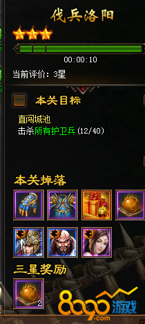 搜索"8090网页游戏"在三国令中伐兵洛阳是非常具有三国特色的副本玩法,玩家能获得装备还有将魂神丹等奖励。