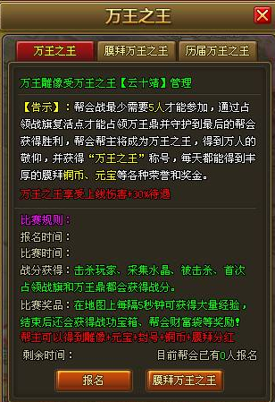 在活动时间前15分钟,可以在万王之王处进行报名