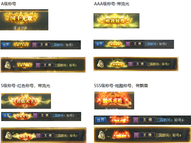 以上称号为样板展示,具体称号款式还在制作中,最终称号中的文字为您定制的文字