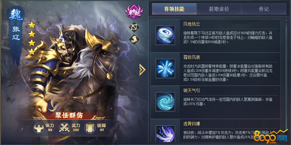 核心输出,怒气技能将某个区域的所有将领吸附在一起,并造成大量伤害,本身属性足以充当核心输出,但搭配张辽的开局吸附效果时,足以让他成为核心输出。