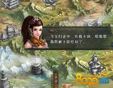 搜索"8090网页游戏"8090《三国群英纪》寻龙探宝是全新的休闲玩法,可在水镜先生处获得各色宝图,不仅有众多寻宝地点能让大家寻觅宝藏,还会有很多意料之外的事件突然发生,丰富的游戏资源等你来领取~~