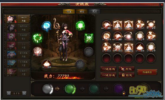 1、女娲殿中消耗铜币炼魂,有几率获得不同品质的御魂