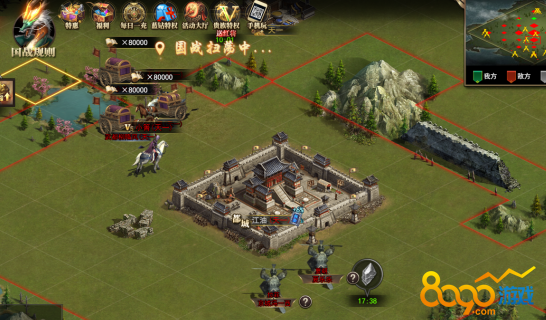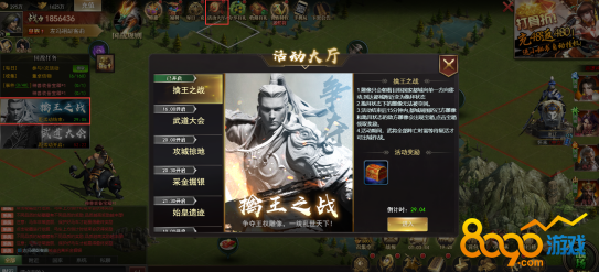 8090《三国战》活动开启时玩家可通过主界面的【活动大厅】中的擒王之战页签按钮按钮进入,或点击主界面左侧的活动栏进入【擒王之战】场地。