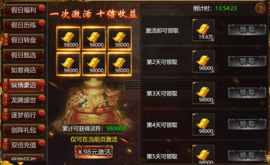 【活动内容】:活动期间,可参与10倍投资、灵符助力的灵符投资活动;
