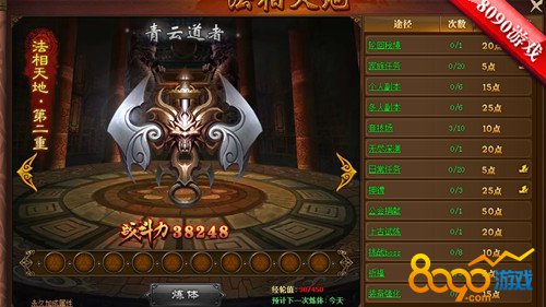 搜索"8090网页游戏"在8090上古诸神中,要说最有特色的系统莫过于法相天地了!玩家每天登陆游戏都会有一些务必要完成的事项,完成这些事项将会获得很大的收益!不论是经验还是道具装备,更可以保证不被其他玩家拉开太大的差距!那么今天我们就一起来看看8090中的法相天地系统吧!
