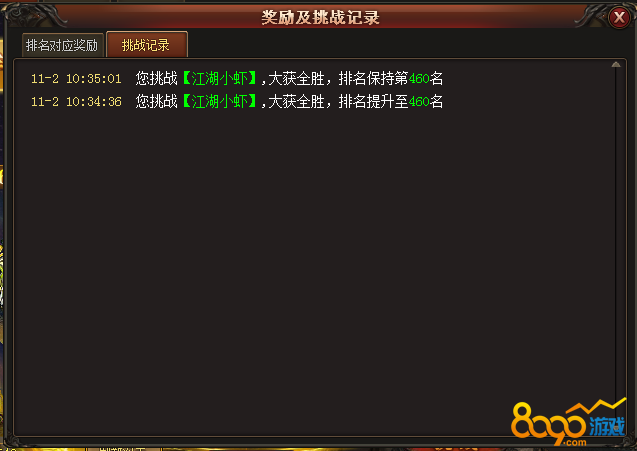可点击面板中绿色文本“查看挑战记录”进行查看最近挑战他人和被他人挑战的记录