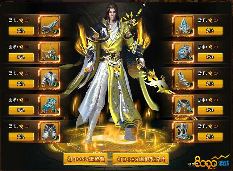 玩家收集到20个碎片可以换一件1介的橙色装备,橙色武器需要25个碎片,多打BOSS多收集碎片,很快就能收集齐一套1介橙装了。