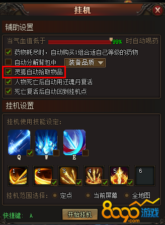 考虑到玩家经常在挂机时频繁的走动拾取物品而导致挂机效率降低,总不能让掉落的好东西落入他人手里吧,所以在灵狐的能力上新增了拾取功能,当玩家将灵狐激活时便开启了灵狐拾取功能,玩家可以在挂机设置面板中勾选“灵狐代替主人拾取物品”选项即可,是不是很贴心很便捷呢!