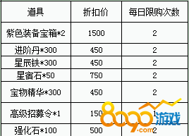 【活动内容】活动期间内,主公每天可花费元宝购买以下道具,购买次数每天重置!