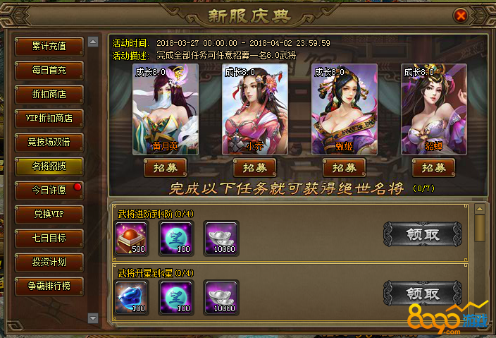 【活动内容】活动期间内,主公完成所有指定任务即可任意招募一位三国美女哦!