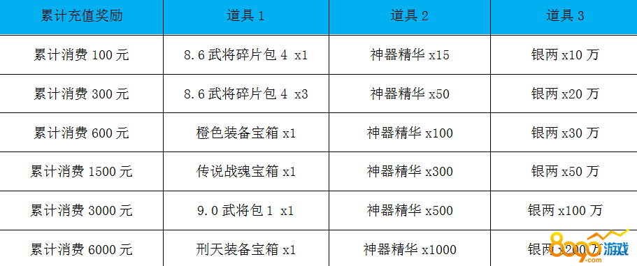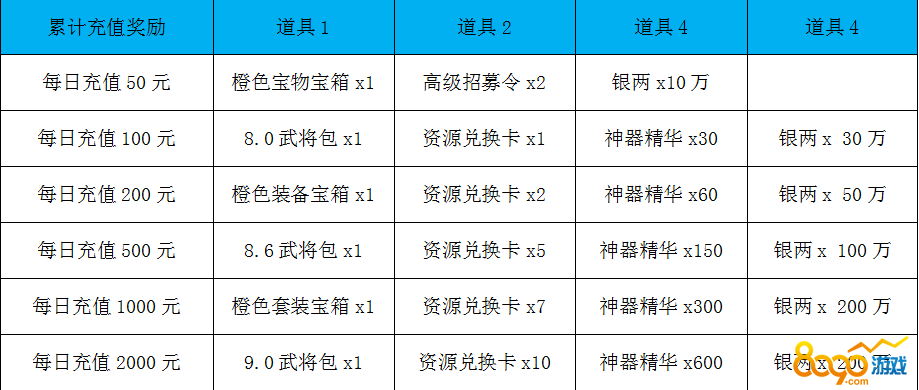 3) 神器培养包:橙色神器兑换券*1,神器精华*10,中级洗练石*10,神器经验*100000