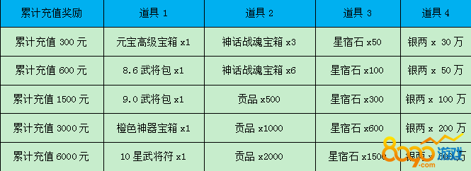 【活动内容】活动期间,累计充值达到对应额度即可领取充值奖励!