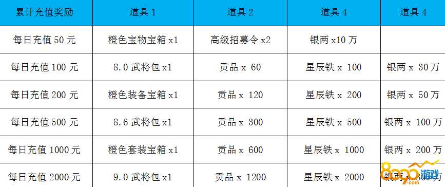 【活动内容】活动期间,每日累计充值达到对应额度即可领取充值奖励!
