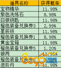 元宝消费转盘概率公示:
