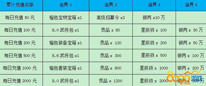 【活动内容】活动期间,每日累计充值达到对应额度即可领取充值奖励!