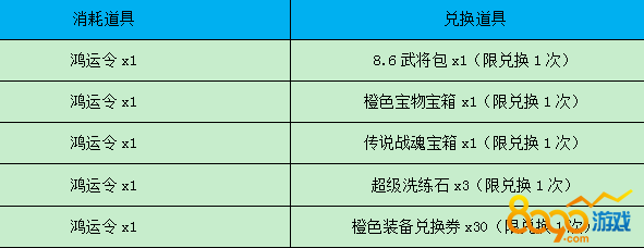 【活动内容】活动期间,可使用鸿运令兑换超值豪礼!