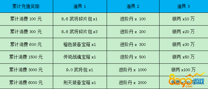 活动期间,玩家累计充值满600元,免费领取 8.6武将包x1 (限领一次)