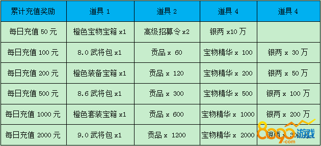 【活动内容】活动期间,每日累计充值达到对应额度即可领取充值奖励!