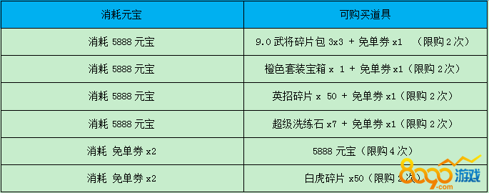 1. 9.0武将碎片包3:赵云碎片x10、孙策碎片x10、郭嘉碎片x10、贾诩碎片x10四选一