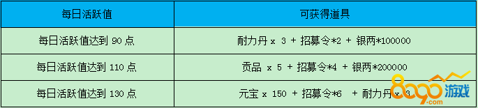 【活动内容】活动期间,超值福利限时上线,玩家完成一定的活跃值任务即可领取超值福利,该活动仅在今天限时上架!