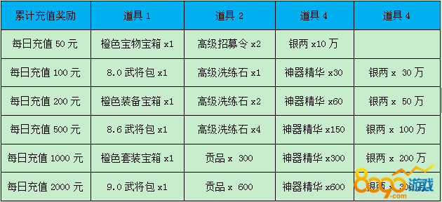 【活动内容】活动期间,每日累计充值达到对应额度即可领取充值奖励!