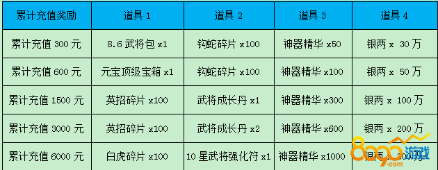 【活动内容】活动期间,累计充值达到对应额度即可领取充值奖励!