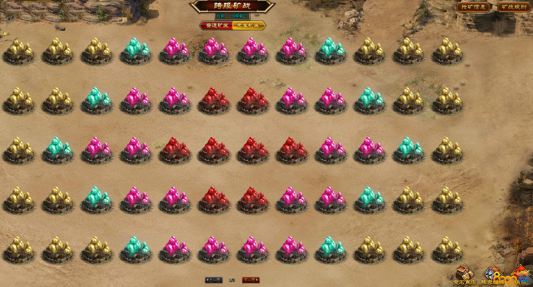4、每个等级区间内,矿战分为普通矿区和元宝矿区,分别消耗体力和元宝;