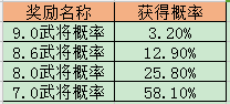 限时神将武将获得概率:
