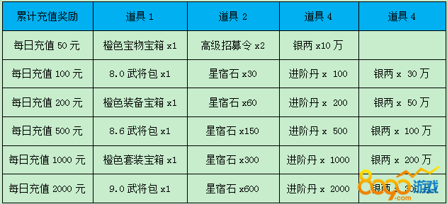 【活动内容】活动期间,每日累计充值达到对应额度即可领取充值奖励!