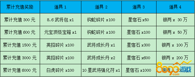 【活动内容】活动期间,累计充值达到指定金额,即可领取额外类充值奖励!