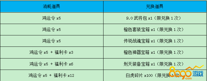 活动六:鸿运福利兑换