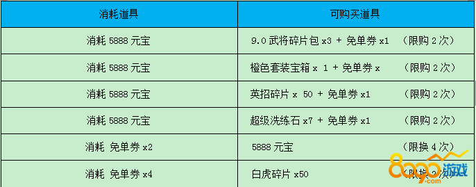 1) 8.6武将碎片包4:马超碎片*10、太史慈碎片*10、张郃碎片*10、张角碎片*10四选一
