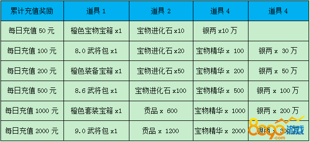 【活动内容】活动期间,每日累计充值达到对应额度即可领取充值奖励!
