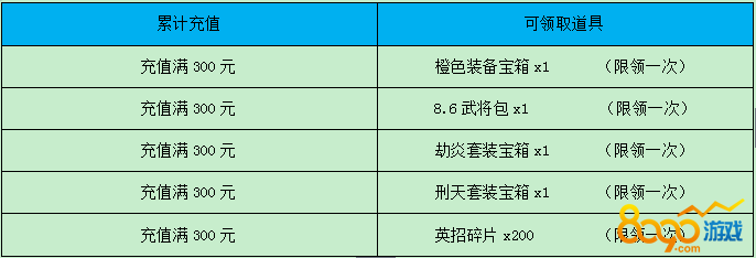 【活动内容】活动期间,累计充值达到对应额度即可领取充值奖励!