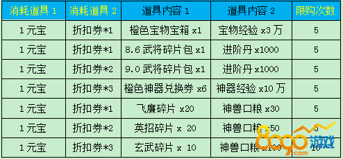 2) 9.0武将碎片包2:诸葛亮碎片x10、陆逊碎片x10、张辽碎片x10、左慈碎片x10四选一