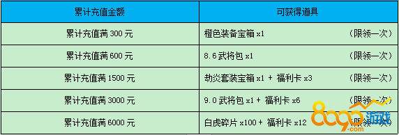 【活动内容】活动期间,累计充值达到对应额度即可领取充值奖励!