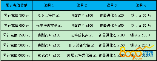 【活动内容】活动期间,累计充值达到对应额度即可领取充值奖励!