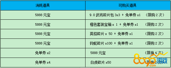 1) 9.0武将碎片包3:赵云碎片x10、孙策碎片x10、郭嘉碎片x10、贾诩碎片x10四选一